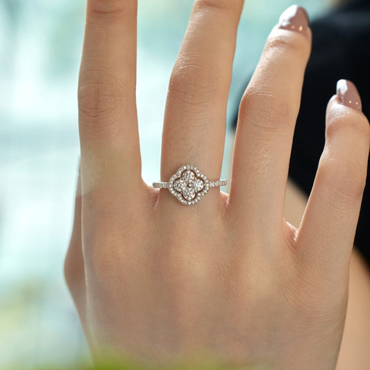 [Rose Tomorrow]Hollow Design Four-Leaf Clover Flower Shape Ring